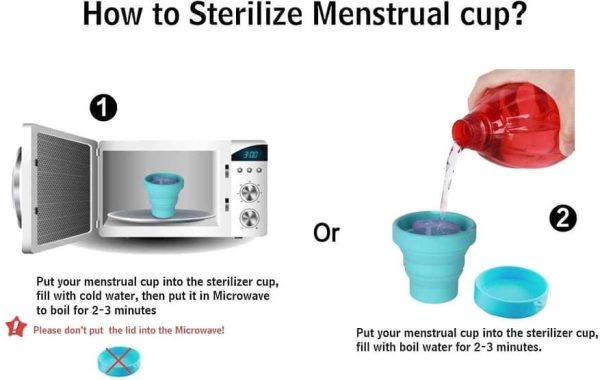 ♻ INSTRUCTIONS (with microwave oven) – Fill the menstrual cup sterilizer with water and immerse the menstrual cup inside the container. Place the sterilizer in the microwave oven for 2-3 minutes and wipe your cup dry. INSTRUCTIONS (without microwave oven) – Fill the container with boiling water. Immerse the menstrual cup inside. Close container lid and shake for a few seconds. Remove the cup and wipe the sterilization container and cup. Keep in a cool and dry place.